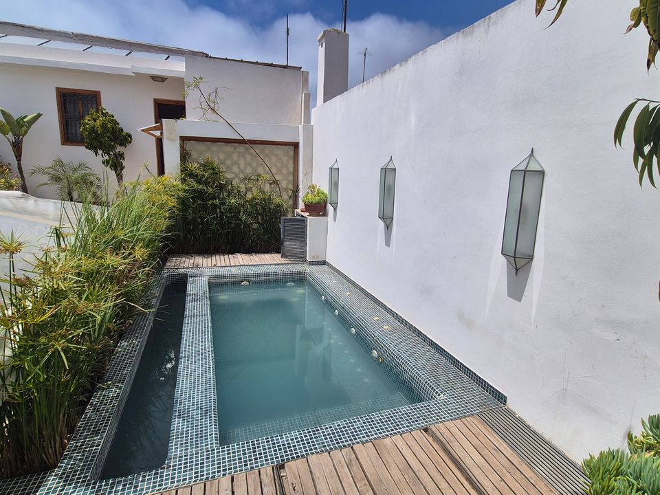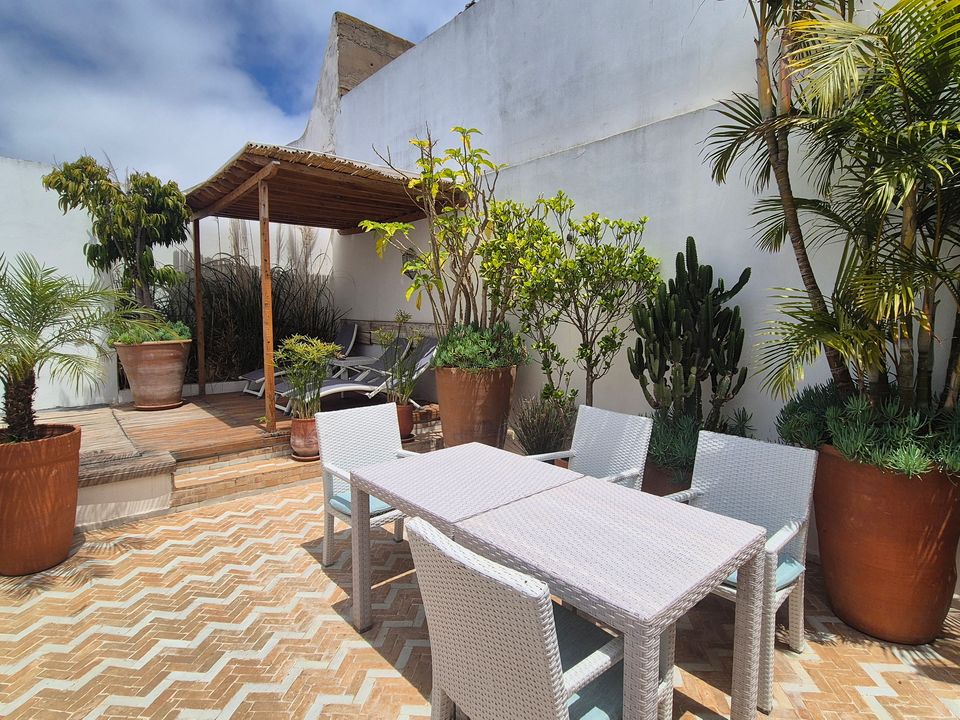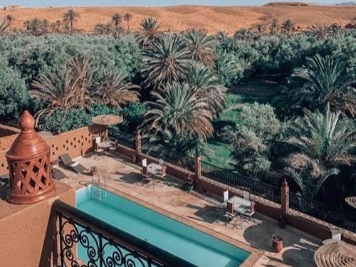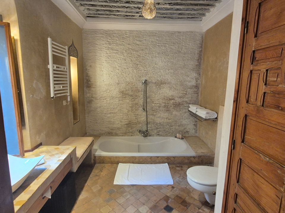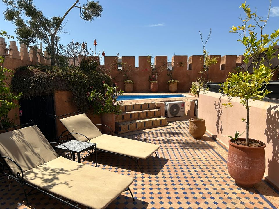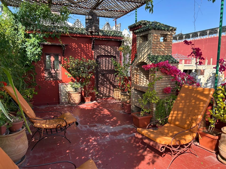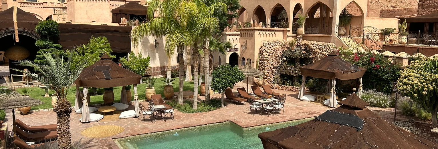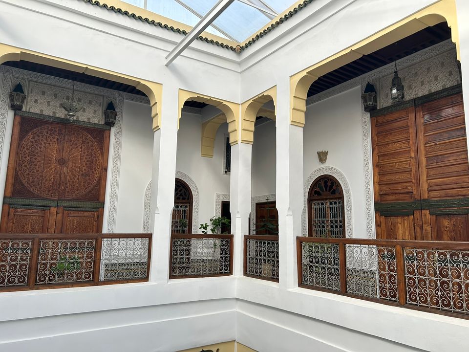 Wat een fijne binnenkomst! Dit kleinschalige en goed verzorgde hotel in riad-stijl ademt de charme van traditioneel Marokko. De mozaïeken, authentieke details en klassiek ingerichte kamers zorgen voor de warme en karaktervolle sfeer. De ontvangsthal met fontein in het midden, is mooi gedecoreerd met traditionele mozaïeken. Via de openslaande glas-in-lood deuren bereik je de fijne binnentuin. Hier vind je diverse zitjes en in de hoek van de tuin een klein zwembad met enkele ligbedden. De kamers bevinden zich verspreid over de begane grond en de 1e verdieping. Op de overloop van de 1e verdieping zijn een aantal tafels geplaatst. Een prettige plek om te ontbijten of dineren bij minder mooi weer. Vanaf het dakterras op de 2e verdieping heb je een prachtig uitzicht over de oude media. Het hotel beschikt niet over een lift.
