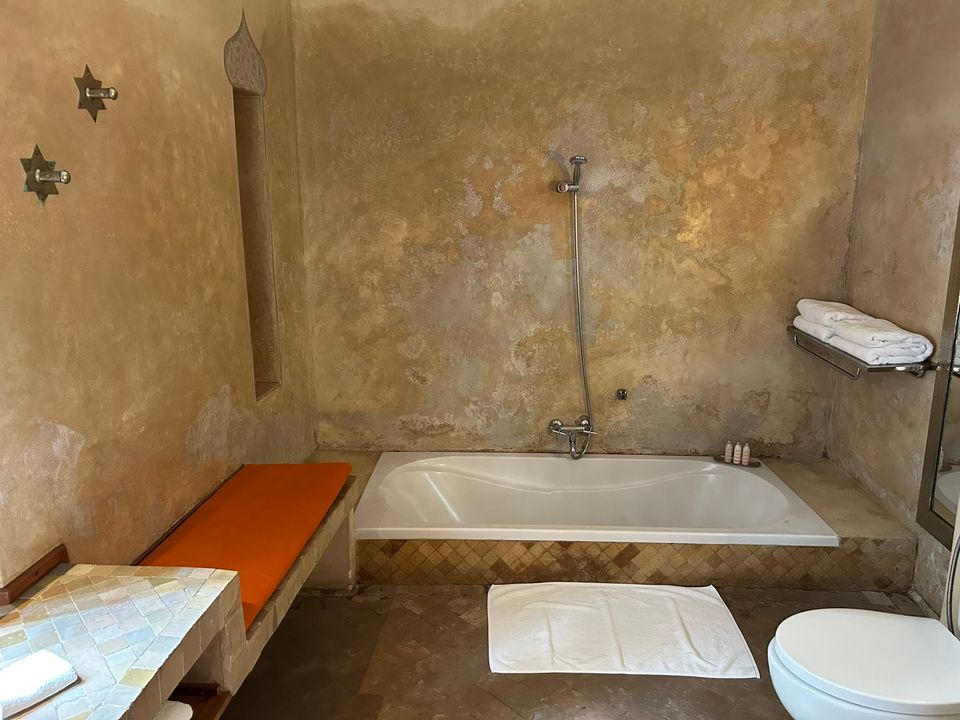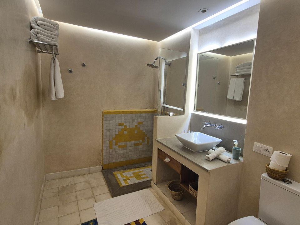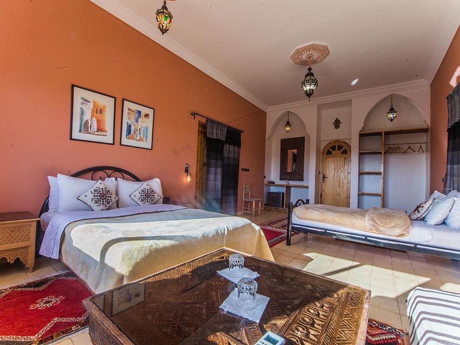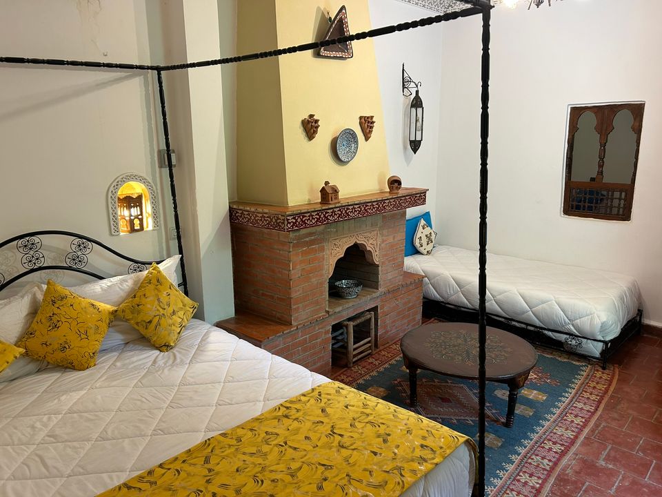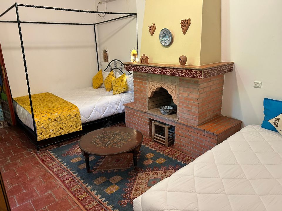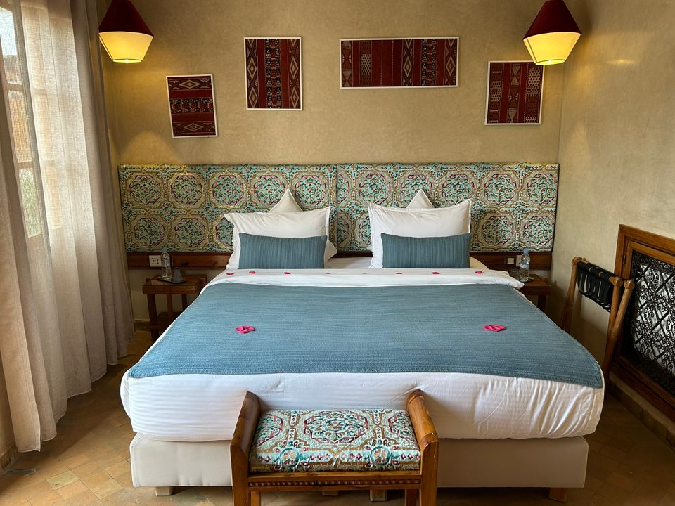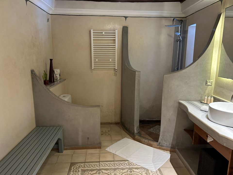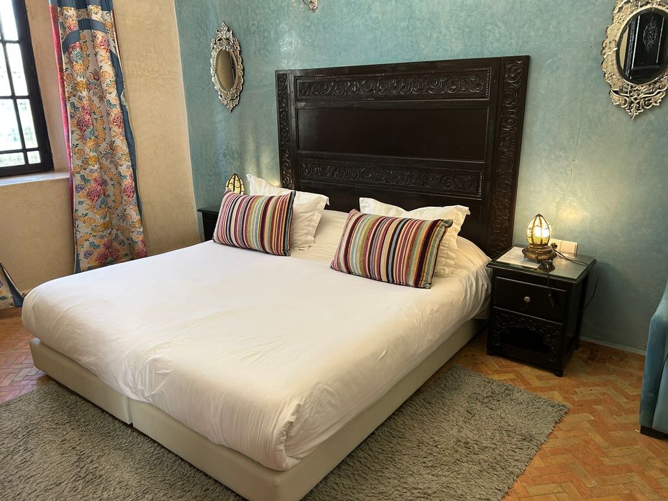 Médersa Room: tweepersoonskamer (36 m2) met twin beds. In deze kamer is ruimte om 1 of 2 extra bedden te plaatsen, waardoor de kamer geschikt is voor 3 of 4 personen. De badkamer beschikt over een douche.