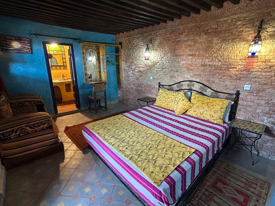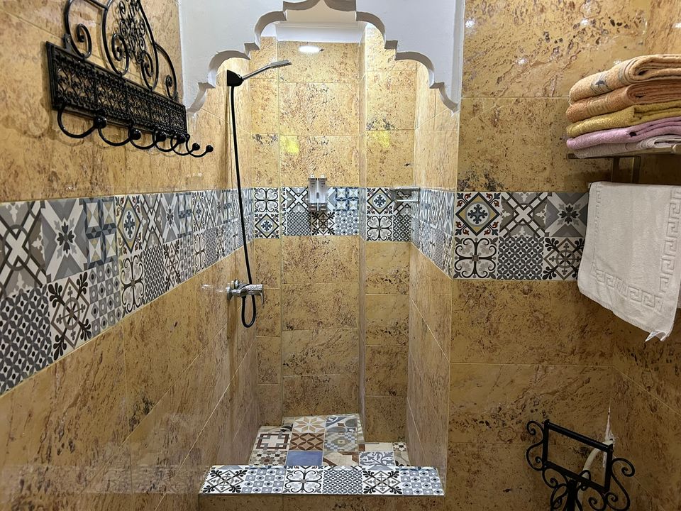 Mérinides Room: ruime tweepersoonskamer (30 m2) met double bed. De badkamer beschikt over een douche. Deze kamer kan verbonden worden met de Bayda Room, waardoor deze kamer voor 4 personen geschikt is.