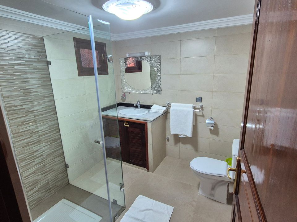 Bayda Room: tweepersoonskamer (20m2) met twin beds. De badkamer beschikt over een douche.