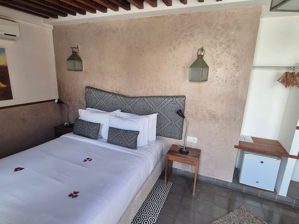 De 8 kamers en suites bevinden zich op de begane grond en 1e verdieping. De kamers zijn ontworpen in Marokkaanse stijl. Versierd met mozaïeken, cedar houten deuren/details en klassiek maar sfeervol ingericht. Alle kamers hebben airconditioning, gratis Wifi, koffie- en theefaciliteiten, een kluisje en een badkamer met douche en/of bad.