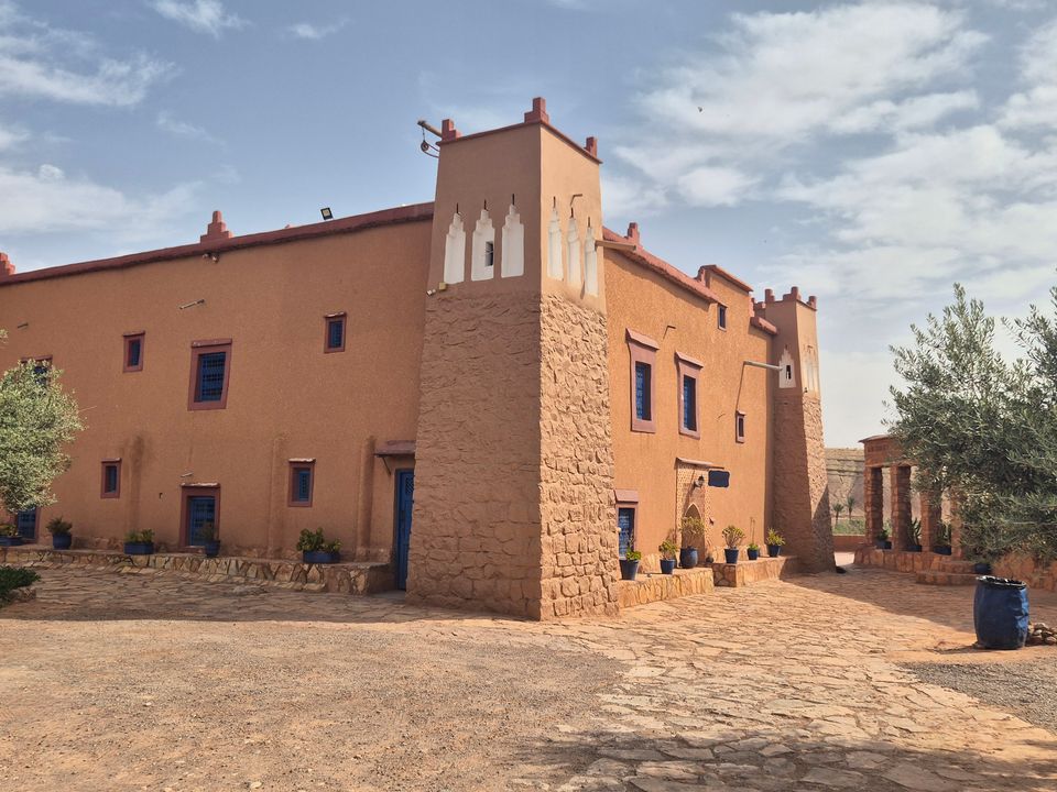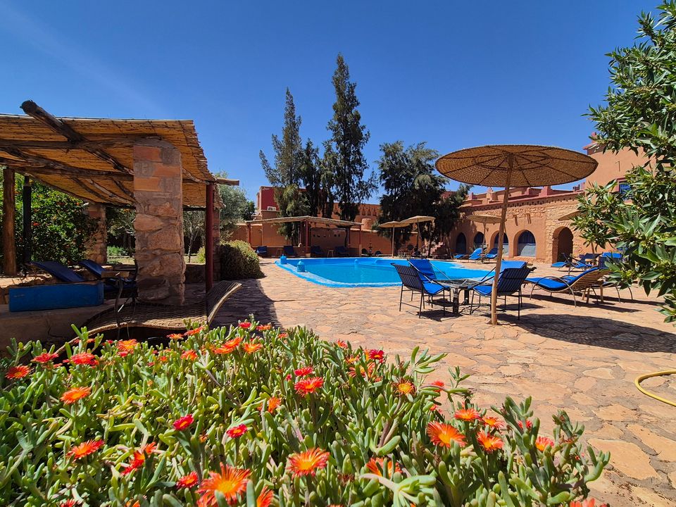 Een oase van rust en stijl: wat een bijzondere plek om te verblijven! Net buiten het dorp ligt dit prachtige resort met mooi aangelegde tuin en uitnodigende zwembad. Het ruim opgezette complex bestaat uit meerdere gebouwen, heeft een luxe uitstraling en is gebouwd in traditionele stijl. Vanuit het resort wandel je via omliggende tuinen in ongeveer 30 minuten naar de indrukwekkende ksar van Ait Ben...