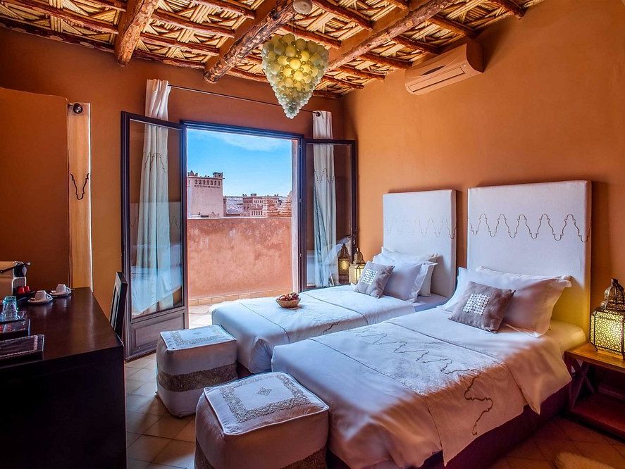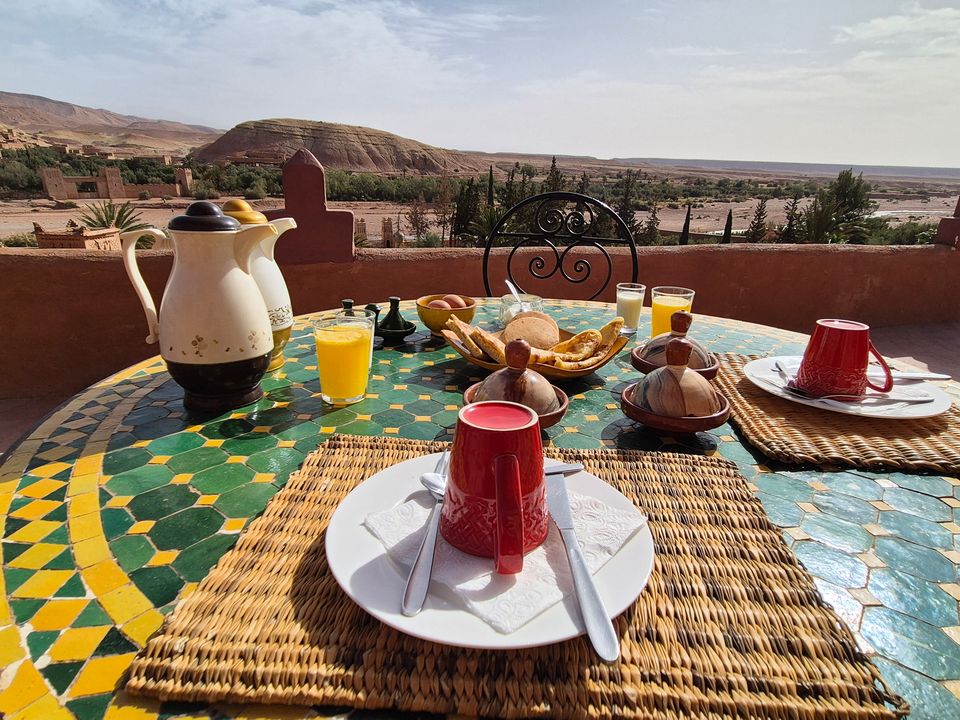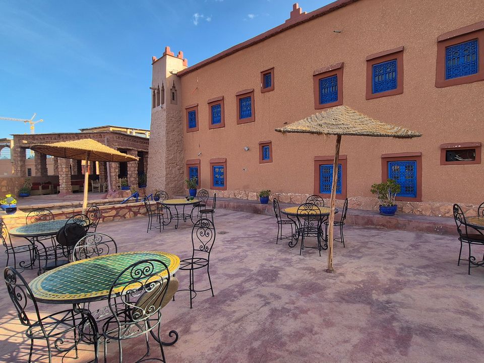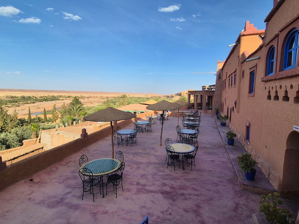 Uitkijkend op de ksar van Ait Ben Haddou, vind je dit nette middenklasse hotel in Ait Ben Haddou. Vanaf het terras kijk je op het bijzondere dorp dat op de Werelderfgoedlijst van UNESCO staat. De riad is authentiek gebouwd; muren van leem en stro met de typische Marokkaanse kleuren. Geniet vroeg in de ochtend van een lekker ontbijt voordat je de brug oversteekt om het mythische dorp aan de overkan...