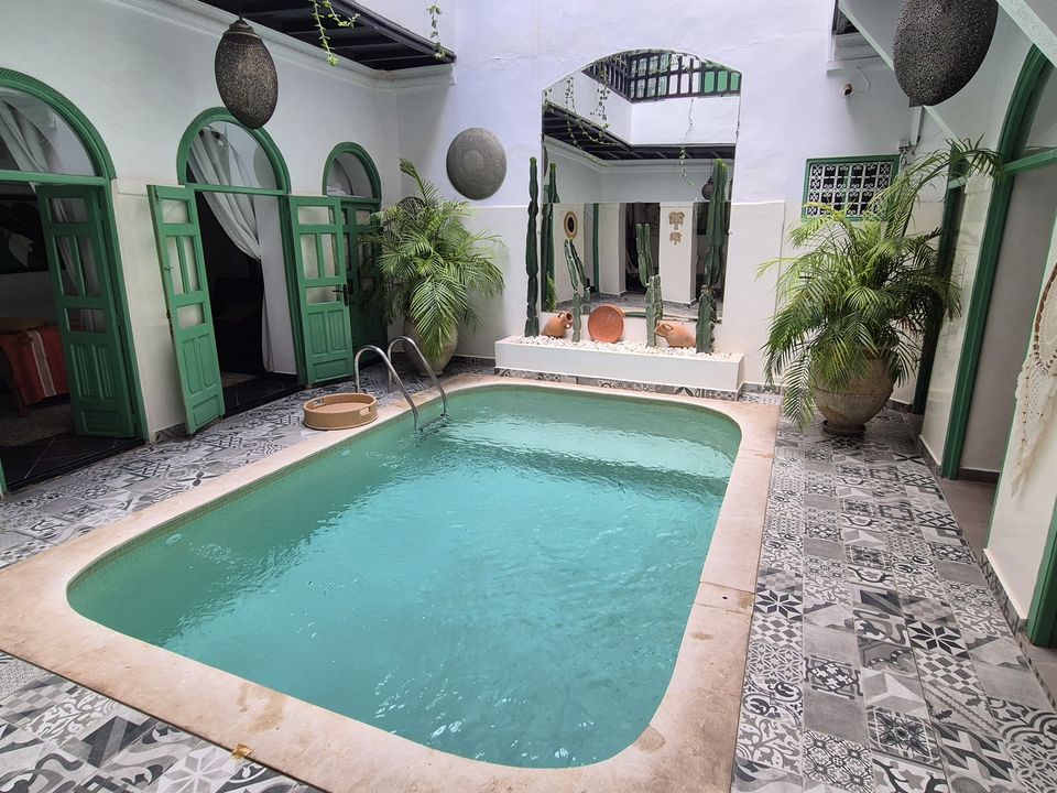 Het 100 jaar oude huis dat ooit bewoond werd door rijke handelaren is omgetoverd tot een riad. Je geniet hier midden in de stad van de rust tussen de muren van de accommodatie. Er is een klein zwembad waar je kunt genieten van een frisse duik. ‘s Morgens vroeg wordt het ontbijt op het dakterras geserveerd.