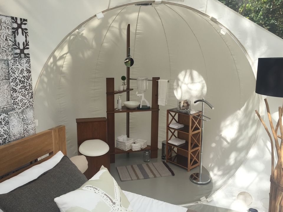 Suite: Deze privésuite heeft een oppervlak van 80m2. De suite is voor maximaal 3 personen. In de slaapkamer staat een groot tweepersoonsbed en in de woonkamer staat een slaapbank. Je hebt bij deze suites uitzicht over de tuin, het zwembad, en de bergen. Naast een buitendouche heeft de suite ook een buitenbad.