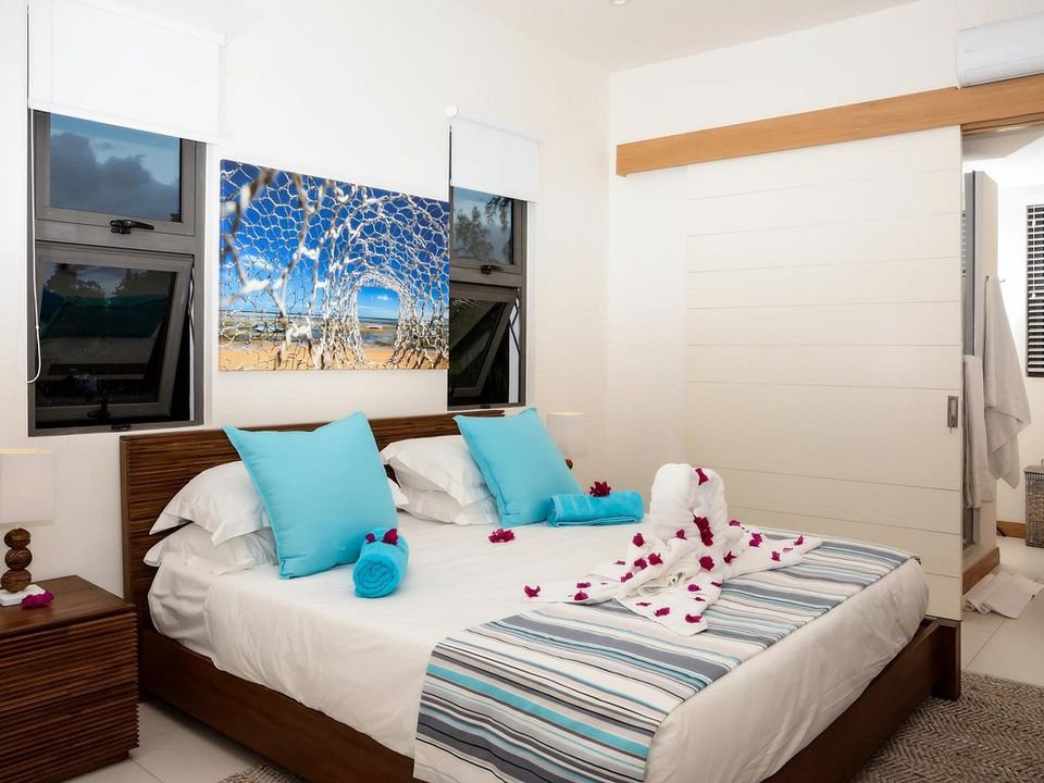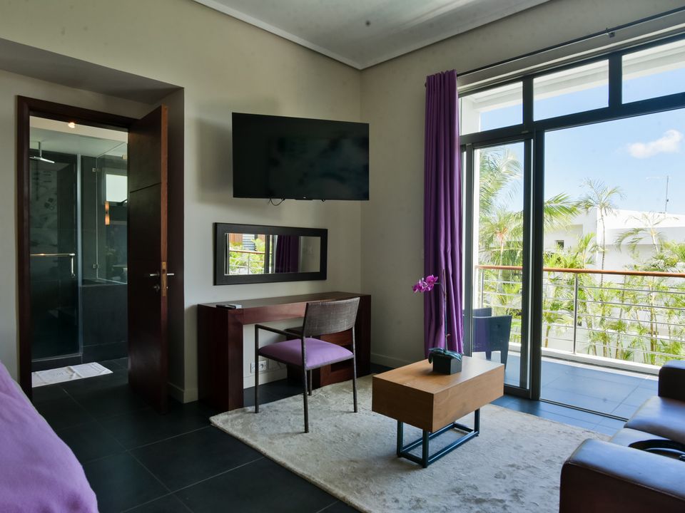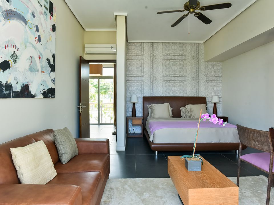 Exclusieve zwembad-suite met zeezicht: Deze exclusieve suite heeft een oppervlak van 110m2. De suite is voor maximaal 3 personen. In de slaapkamer staat een groot tweepersoonsbed en in de woonkamer een slaapbank. Bij deze suite is er een privézwembad met uitzicht op de zee en de bergen. Doordat deze suite op het hoogste punt staat, heb je een 360 graden uitzicht over de omgeving.