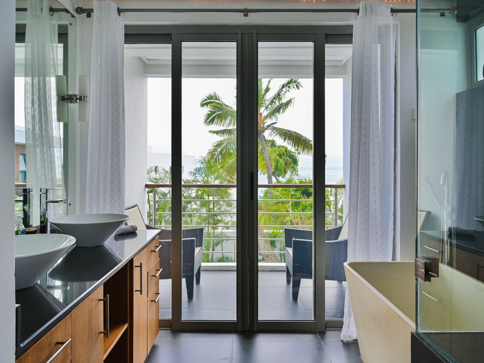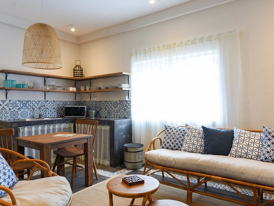 Suite met uitzicht op zee of de tuin: De suites met zeezicht hebben een oppervlak van 105m2 en de suites met tuinzicht 90m2. De suites zijn geschikt voor maximaal 3 personen. In de slaapkamer staat een groot tweepersoonsbed en in de woonkamer een slaapbank. Vanaf je privézwembad kijk je uit naar de zee en de bergen of de tuin en de bergen.