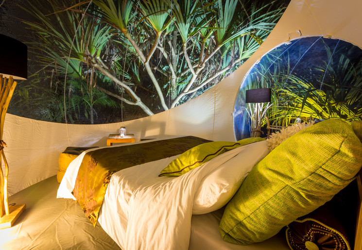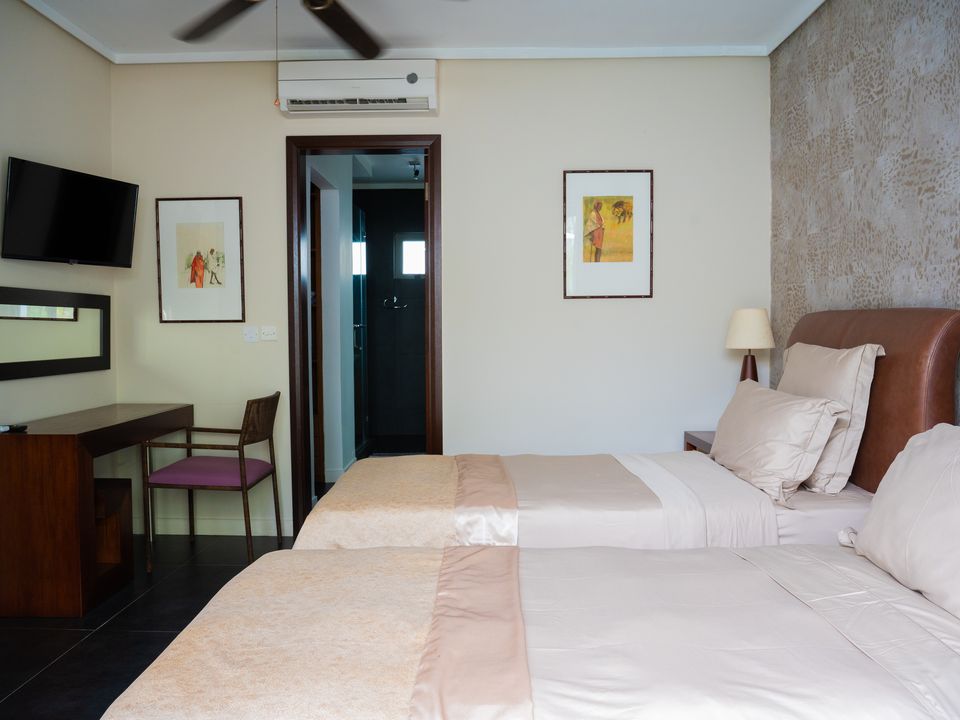 Kaz standaard: Deze kamer heeft een oppervlak van 50m2 en heeft een groot tweepersoonsbed. Deze kamer heeft uitzicht over de tuin, het zwembad, en de bergen. Er zijn 3 verschillende kamers met elk een ander interieur. Hierbij heb je keuze tussen de Kaz Feraye, geïnspireerd op de Afrikaanse invloeden, de Kaz Diaboi, geïnspireerd op de Indische invloeden en de Kaz Bambou, geïnspireerd op de Chinese invloeden.