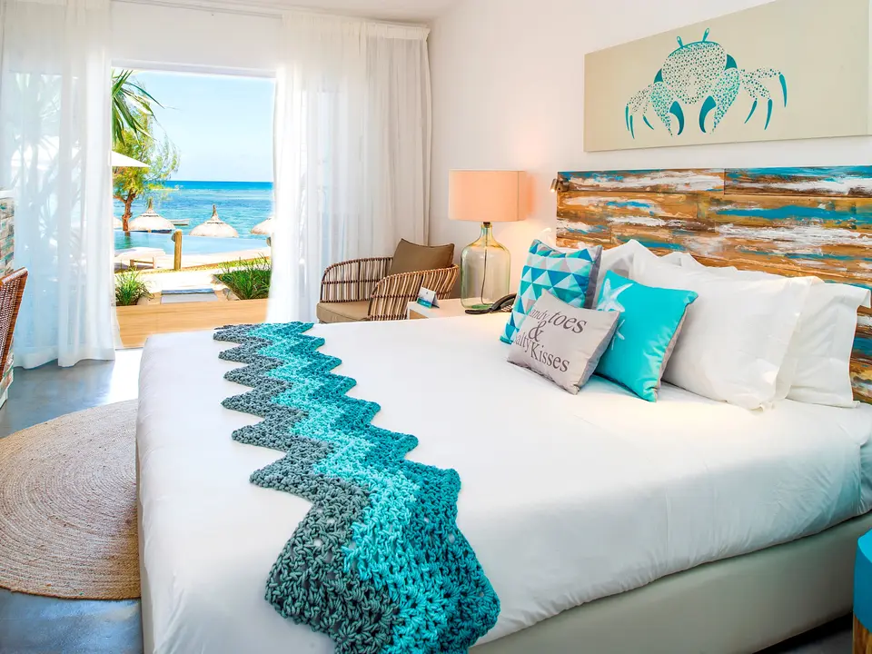 Alle 22 kamers zijn modern ingericht in strandstijl met een Mauritiaanse ‘touch’. Met een privéterras of balkon met zitje uitkijkend over de oceaan of tuin. Badkamer met douche en toilet, airconditioning, kleine koelkast, koffie- en theefaciliteiten, kluis, televisie en WiFi.