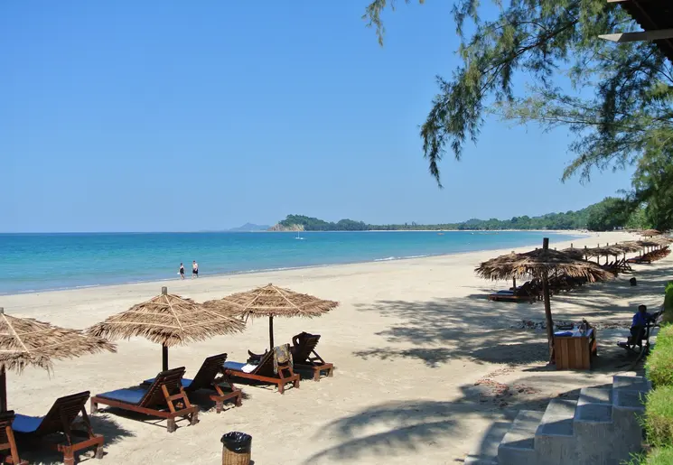 Ngapali Beach is een mooi strandgebied: witte zandstranden en wuivende palmen. De meeste hotels liggen aan een enorm grote baai (die geen specifieke naam heeft) van zo’n naar schatting vijf a zes kilometer lang (heerlijk om in alle vroegte, wadend door de golven, te wandelen). Er zijn restaurantjes in de buurt van de meeste hotels, maar u kunt natuurlijk ook heerlijk eten (als u buiten uw eigen hotel wilt eten) bij andere hotels die aan het strand liggen. De hotelrestaurants zijn praktisch overal aan zee gelegen, dus kies maar uit (en u bent overal een welkome gast). Wel leuk: het Pleasant Resort (helemaal aan de zuidkant van de baai) heeft een restaurant op het eilandje tegenover het resort; bij eb wandelt u er heen, bij vloed liggen er bootjes klaar. Ter plekke kunt u bootexcursies boeken (bij uw hotel of bij een lokale travelagent in het straatje). U kunt naar White Sand Island (ook wel Pirateneiland genoemd) en naar Pearl Island; u kunt er snorkelen (hoewel het geen top-snorkellocaties zijn), vissen en gewoon heerlijk op het strand liggen en zwemmen. Het is aan u. De hotels zijn gesloten van juni tot en met september (te veel regen, heeft ook met de golfstroom te maken).