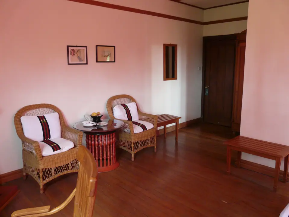 Het hotel ligt buiten het centrum van Kalaw. Het ligt op een heuvel, waar veel huizen in Engelse stijl staan. Sommige goed onderhouden dan wel gerenoveerd, andere verwaarloosd. Het landschap is prachtig en doet Engels aan. Het is lekker rustig, er zijn echter geen winkeltjes en restaurantjes op loopafstand. Het gebied nodigt echt uit tot het maken van wandelingen.