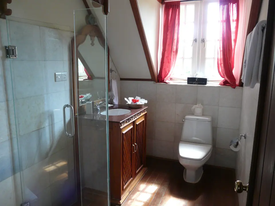 De kamers zijn ruim en hebben een houten vloer. De inrichting is fris. Er staan 2 stoeltjes en een tafel en een bureau in. Heel leuk detail is de openhaard. Als je hier in de winter bent, kan deze daadwerkelijk worden aangestoken. Er is geen fan of airco, maar dat is door de hoge ligging van het gebied niet nodig. In de kamers staat een waterkoker en is er een kluisje. De badkamers zijn netjes. Sommige hebben alleen een douche, andere een mooi verzonken bad. Overal hangt een föhn.