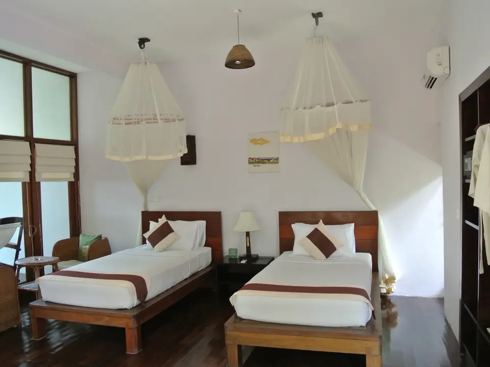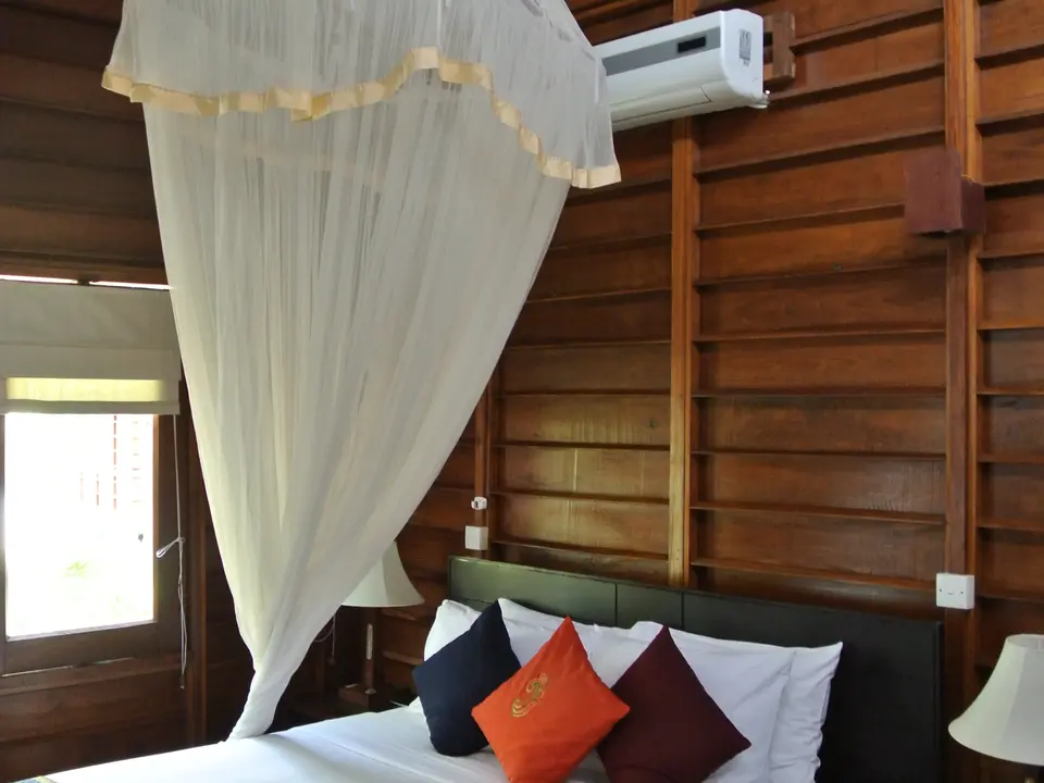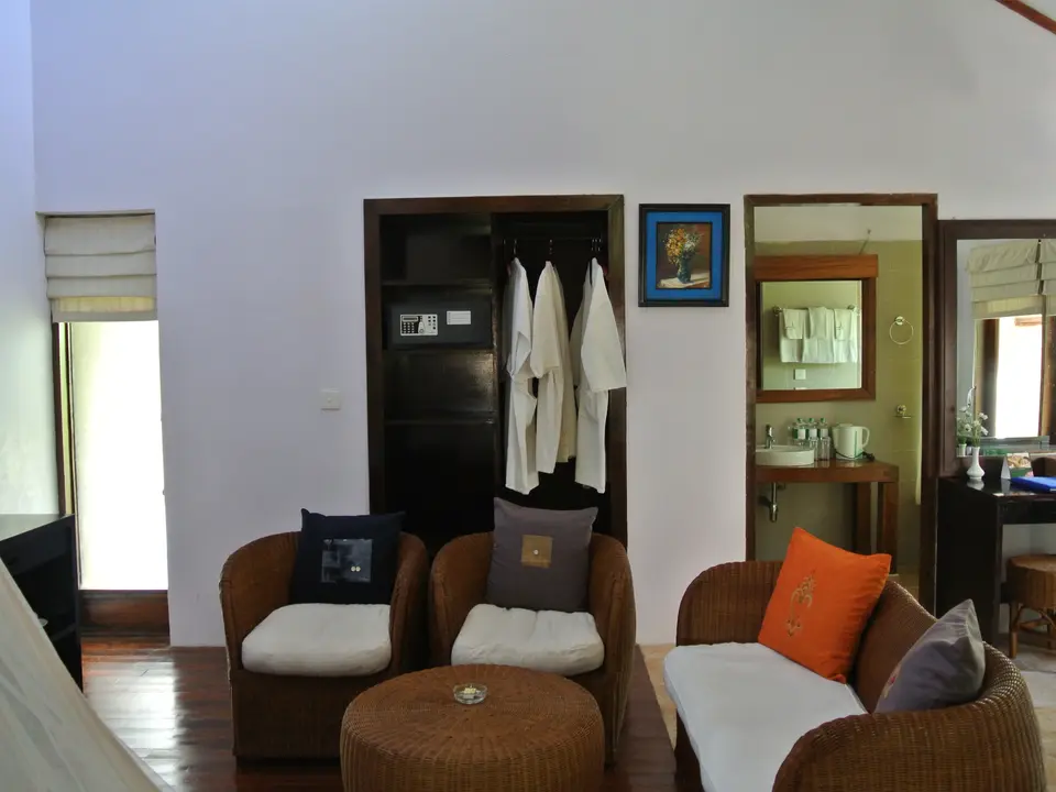 Alle kamertypes beschikken over airconditioning, een televisie, een waterkoker en minibar. In de badkamer is een bad met douche erboven. Daarnaast hebben sommige kamers een buitendouche. Een föhn is aanwezig.