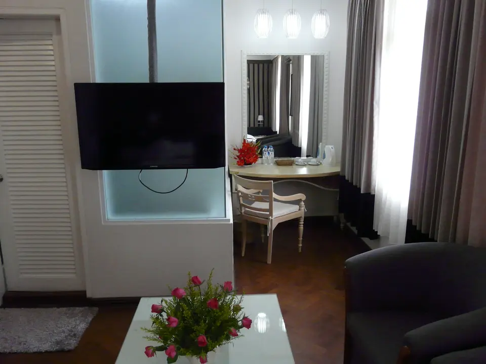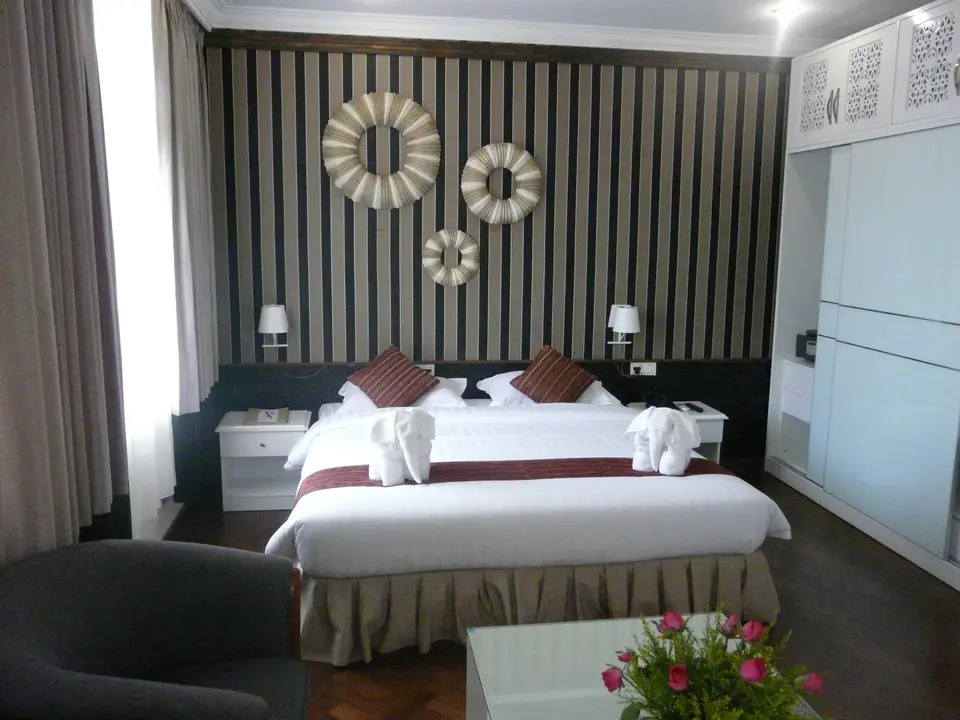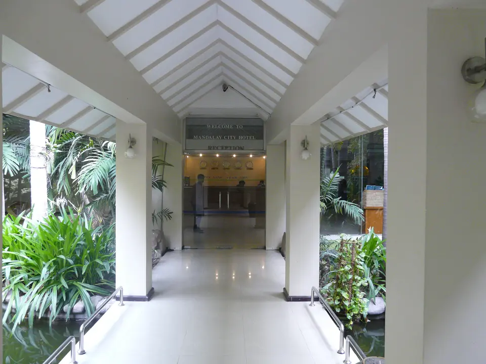 Een aardig middenklasse hotel, waar nog iets van groen te vinden is, zo middenin de stad. De entree ligt verscholen in een soort steegje. Je komt op een grote binnenplaats met veel groen en voila: het Mandalay City Hotel.