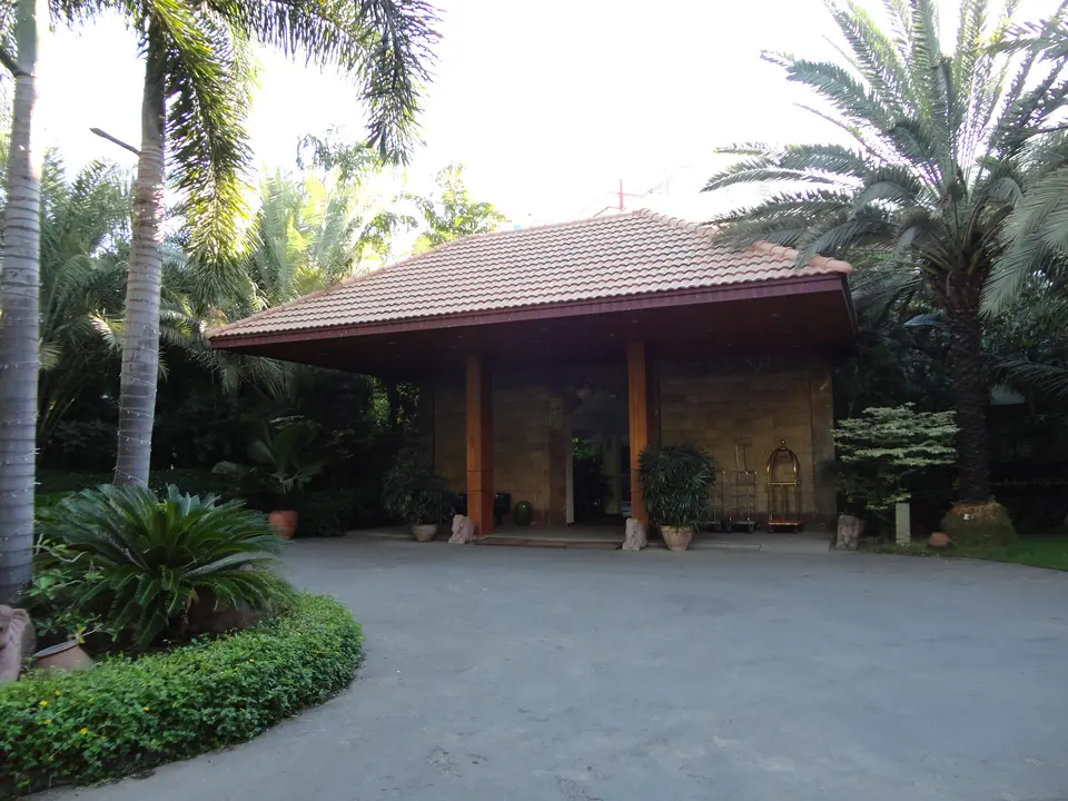 Tussen twee vijvers loop je naar de lobby. Heel leuk gedaan, zo midden in de stad. De lobby is keurig, maar niet heel sfeervol. Heel fijn: een zwembad in de tuin.