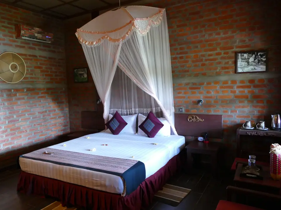 Er zijn in totaal 20 kamers, onderverdeeld in 10 bungalows (huisjes per 2 geschakeld dus), met uitzicht op de rivier. De kamers hebben een bakstenen muur en op de vloer liggen tegels.
