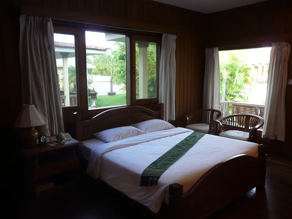 Het hotel heeft 101 kamers, alles is laagbouw. De kamers zijn geschakeld, de meeste zijn 2-onder-1 kap huisjes. Ze zien er leuk uit met schuine daken. De kamers zijn ruim en de badkamer is ook groot. Iedere kamer beschikt over airconditioning, een televisie en een minibar. In de badkamer is warm water en een haardroger. Er is een terras bij de kamers waar je kunt zitten. Boek meestal een deluxe room, zie hieronder. Er zijn kamers met twee aparte bedden (twin rooms) en kamers met een tweepersoonsbed (double room).