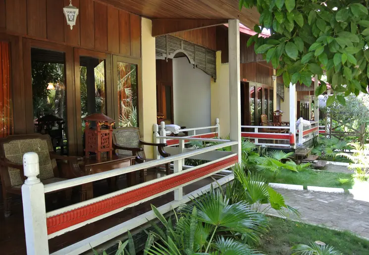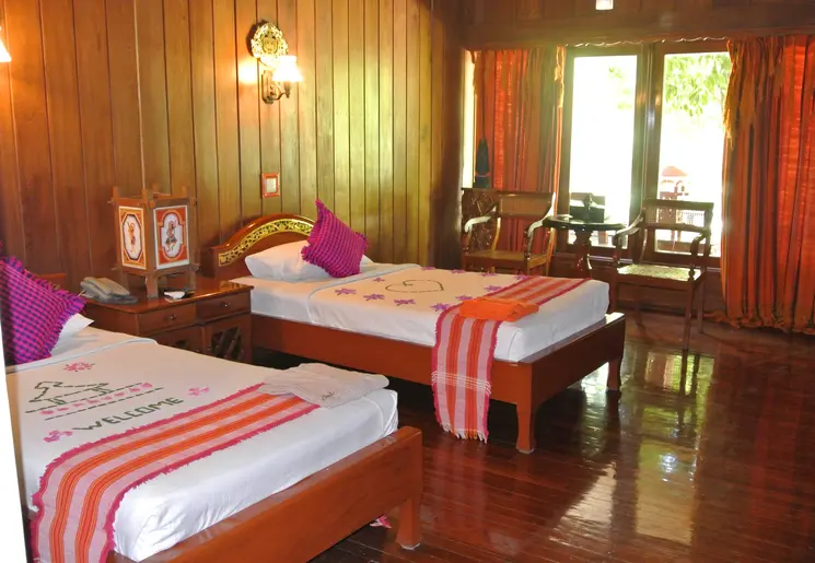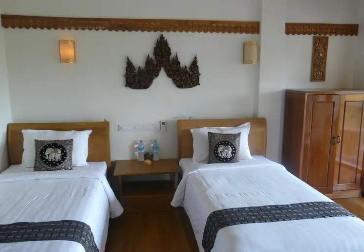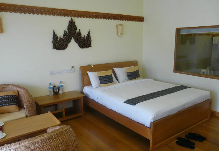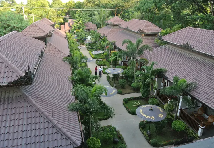 Buiten het stadje Monywa gelegen, een rustig middenklasse hotel, het beste wat er is. Het is geen straf om hier een nachtje te verblijven. De tuin is leuk aangelegd, de omgeving is mooi.