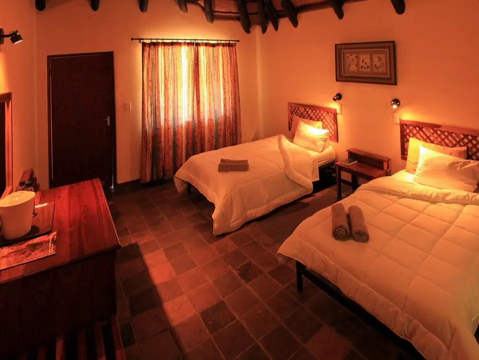 De lodge biedt voor elk wat wils. De publieke ruimtes zijn mooi en geheel in harmonie met de omgeving ingericht. Vanuit de lounge en de bar heb je het allerbeste uitzicht op een prachtige zonsondergang waar Namibië zo bekend om staat. Puur genieten hier! Er is een klein zwembad waar het goed toeven is en vanwaar je een fraai uitzicht hebt op de omgeving. Bekend staat het ook om zijn uitstekende maaltijden ook voor toeristen van buitenaf. Geniet van een ruim assortiment verse producten zowel in de ochtend, tijdens de lunch als het diner.
