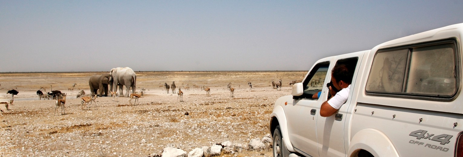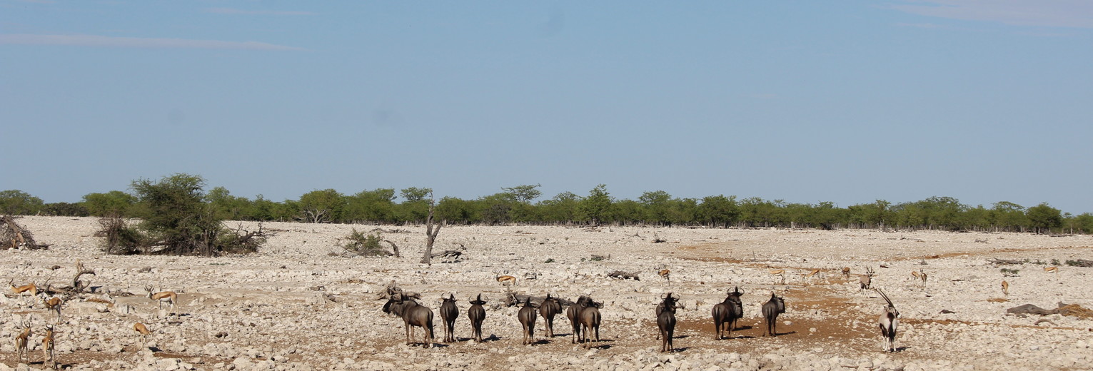 Etosha betekent ‘grote witte vlakte van droog water’. Die naam wordt gelijk verklaard als u aankomt bij Etosha’s Pan. Ooit stroomde hier een rivier, honderdtwintig miljoen jaar geleden is die opgedroogd en vandaag de dag resteert een grote, witte zoutvlakte dat een gebied van 5000 km² beslaat. De Bosjesmannen (San) die ooit dit gebied bewoonden, hebben hun eigen verklaring voor de zoutpan. Na een slachterij in een San-dorpje waarbij alleen de vrouwen werden gespaard, zou er een weduwe zó hard gehuild hebben dat haar opgedroogde tranen een grote witte vlakte hebben gevormd. Hoe dan ook, de vlakte is adembenemend mooi. In het regenseizoen is de pan kortstondig gevuld met water en trekken flamingo’s, pelikanen en honderden andere vogels, maar ook zebra’s, neushoorns en springbokken naar de oevers van Etosha’s Pan.