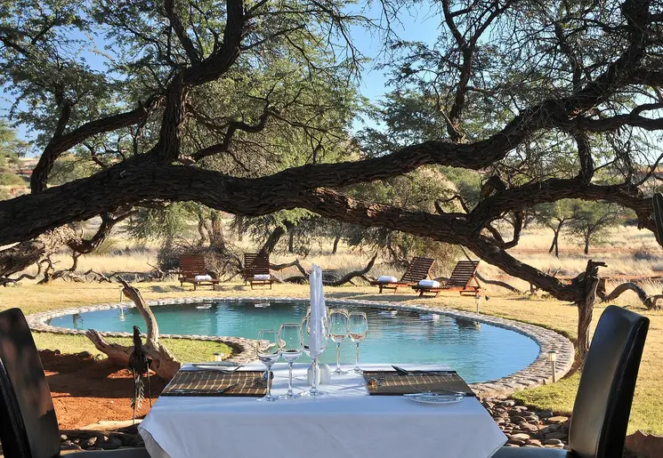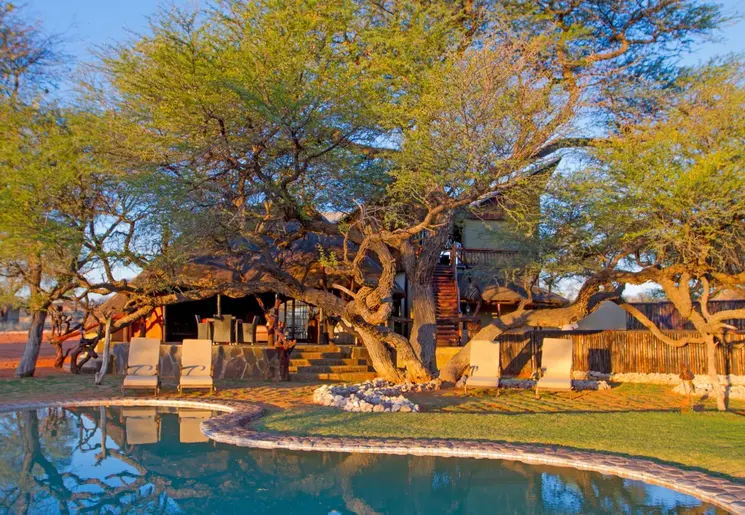 Je kunt op eigen houtje in de natuur wandelen of deelnemen aan een van de activiteiten die de lodge organiseert. Wat dacht je van een jeepsafari? Op hobbelige zandwegen baant de jeep zich een weg over de savanne langs kameeldoornbomen en rivierbedden (ter plaatse te boeken).