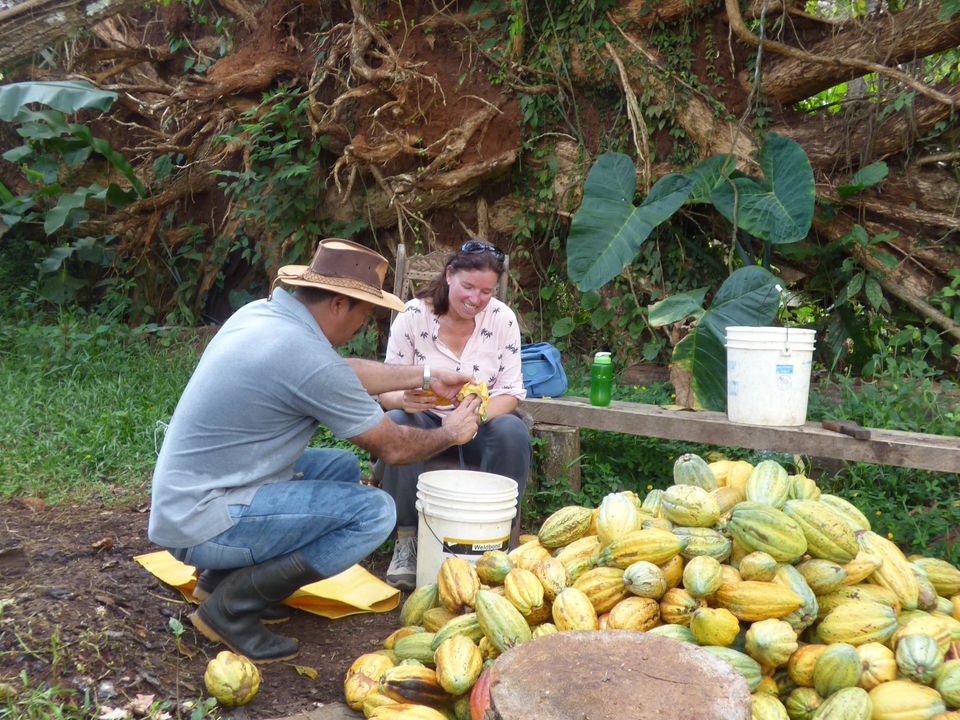 Vanaf het dorp El Castillo loop je in ongeveer 3 kwartier naar een cacaoplantage. Als je in het juiste seizoen bent, help je zelf mee met het plukken. Na het plukken, breek je de cacaovruchten open, kijkt of de bonen goed zijn en doet de kleverige cacaomassa in een emmer. Behalve cacao wordt er ook kaneel verbouwd. Samen met de cacaoboer wandel je naar de coöperatie waar de bonen verwerkt worden;...