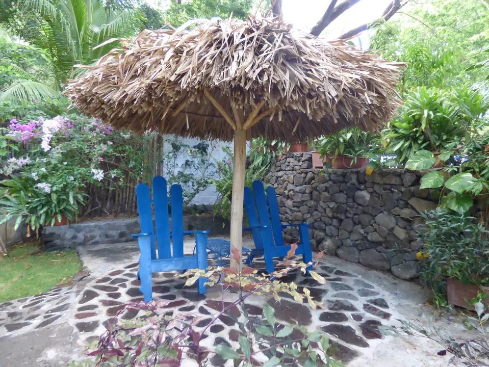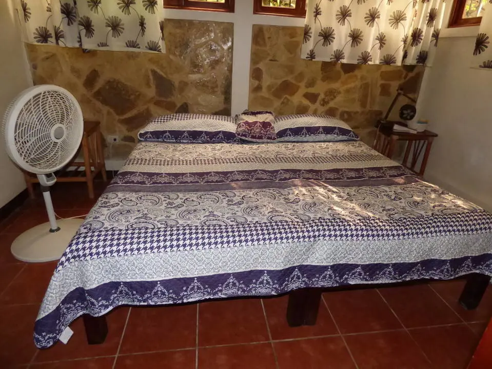 Pájaro Azul heeft slechts vijf kamers. Twee aan de boskant van de weg. Weg is trouwens een groot woord: het is een hobbelig pad met zand en keien. Je zult dus geen last hebben van verkeer. De drie andere kamers zijn aan de kant van de lagune, in een tuin.