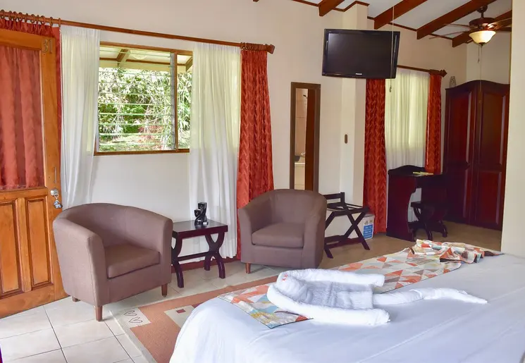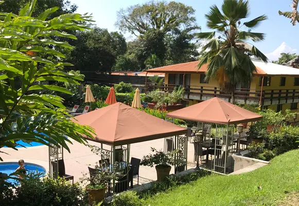 Vanaf het terras bij het zwembad en de balkons van de kamers kun je het Manuel Antonio National Park bewonderen. In de weelderige tuin van het hotel is altijd wat te zien: van de grote blauwe Morpho vlinders tot kolibries, apen en herten.