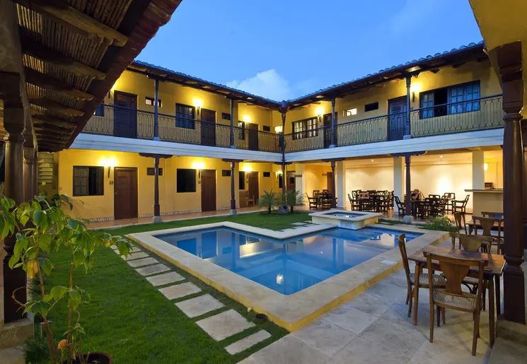 Klein comfortabel, boutique hotel. Je overnacht in een koloniaal gebouw in het centrum van León. Geniet van de rust in de binnentuin met zwembad.