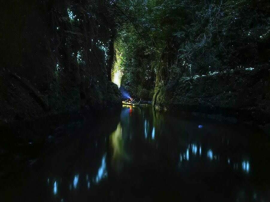 Eind van de middag ontmoet je je gids en medereizigers op een locatie aan de Wairoa-rivier. Onder het genot van heerlijke Nieuw-Zeelandse wijnen en kazen zie je de zon ondergaan achter de glooiende heuvels. Tijdens de schemering ga je samen met de gids naar het water, waar het avontuur al op je wacht. De smalle, hoge kloof waar je doorheen vaart is het thuis voor duizenden lichtgevende glimwormen....