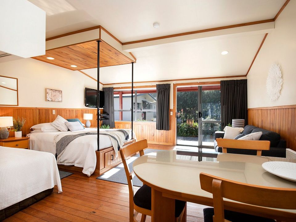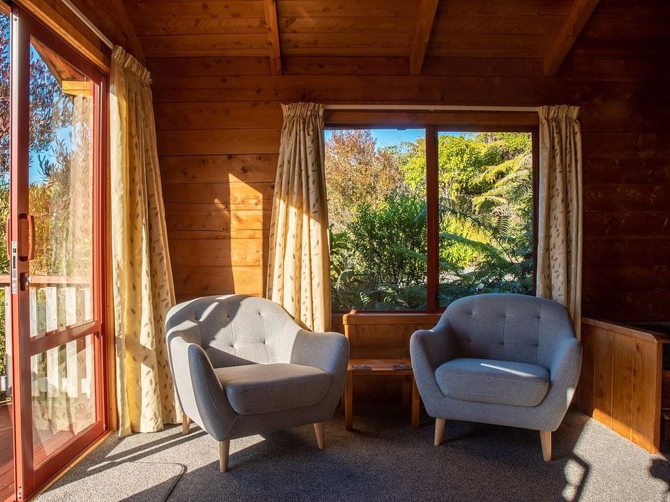 Dit hotel is te vinden op een paar minuten lopen van het Abel Tasman National Park, waardoor het hotel omringd is door de natuur. Het hotel is verdeeld over verschillende houten chalets omgeven door allerlei planten. Een perfecte plek om je even terug te trekken en om een bezoek te brengen aan de prachtige natuur in het nationale park Abel Tasman of om naar de nabijgelegen zee te gaan.