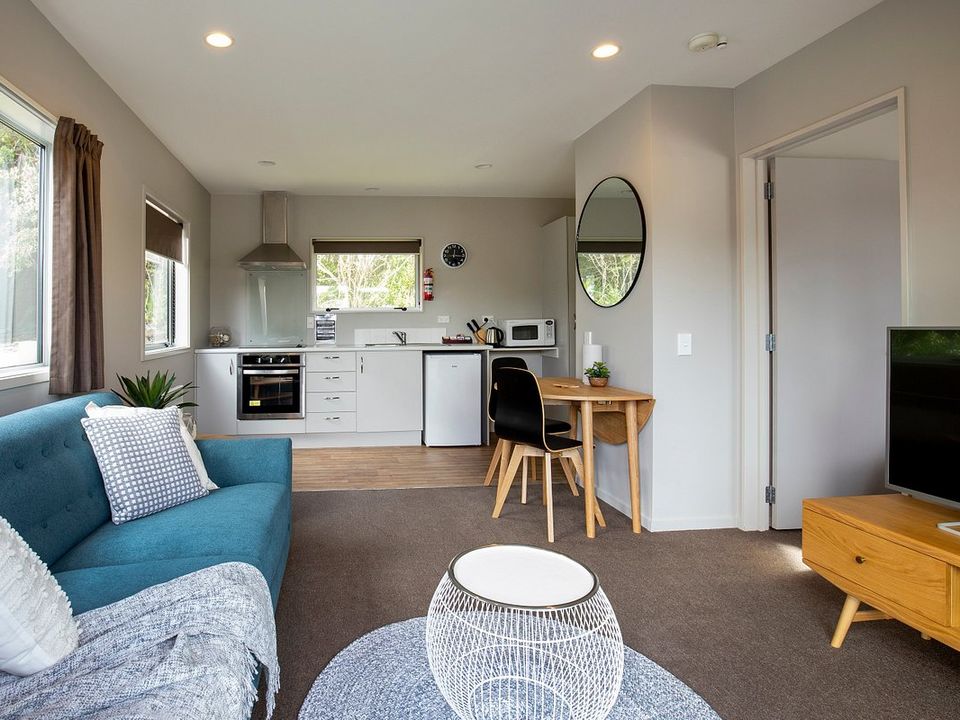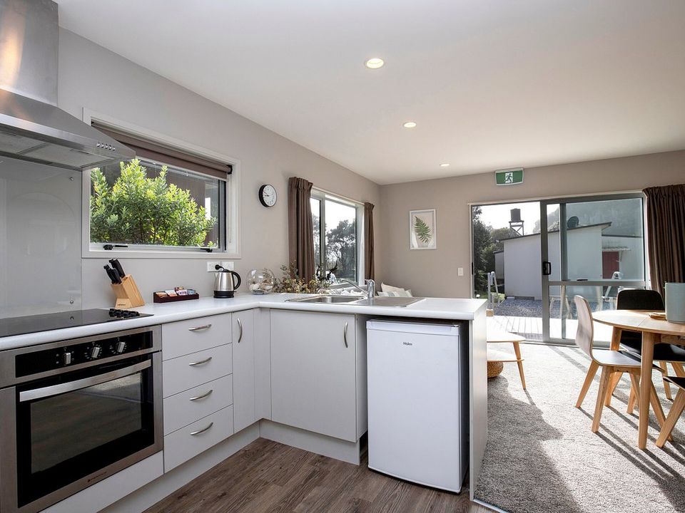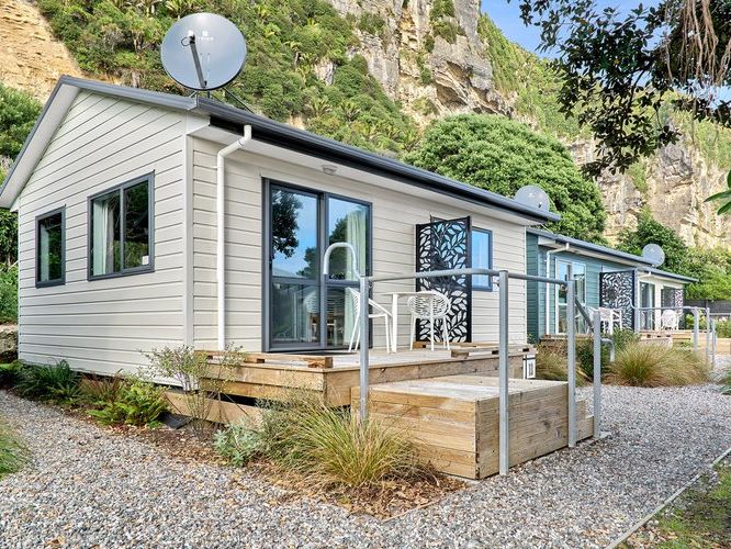 De accommodatie beschikt over 3 huisjes, allemaal verschillend in grootte. Alle huisjes bieden veel privacy en hebben een eigen terras met uitzicht op het water en de bergen. Vroeger werden de huisjes gebruikt voor de appelplukkers, maar nu zijn ze als vakantiehuisjes een zeer goede uitvalsbasis voor het verkennen van het Abel Tasman National Park. Op slechts 5 minuten rijden van het kustdorp Mapu...