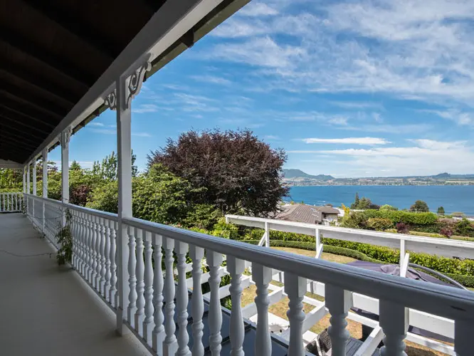 Wat een plaatje: een Frans koloniaal huis omgeven door een mooie en grote tuin. De charmante kamers met balkon bieden een prachtig uitzicht over Lake Taupo. De gastvrije gastheren Steve en Liz vertellen graag over de omgeving en zullen er alles aan doen het verblijf zo aangenaam mogelijk te maken.