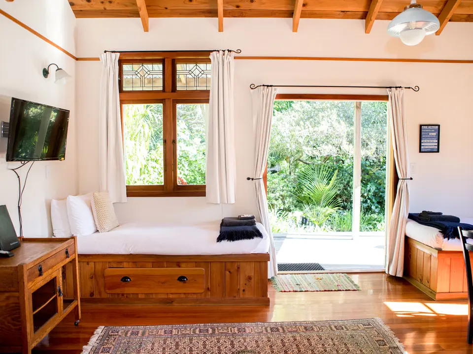 Je kamers en appartementen van The Church in Hahei worden omgeven door een subtropische tuin, waardoor veel privacy gecreëerd wordt. Door het houten meubilair en houten afwerkingen hebben je kamers en huisjes een warme uitstraling. The Church is een ideale uitvalbasis om het schiereiland Coromandel te verkennen. Enkele bezienswaardigheden van het schiereiland Coromandel liggen op korte afstand.
