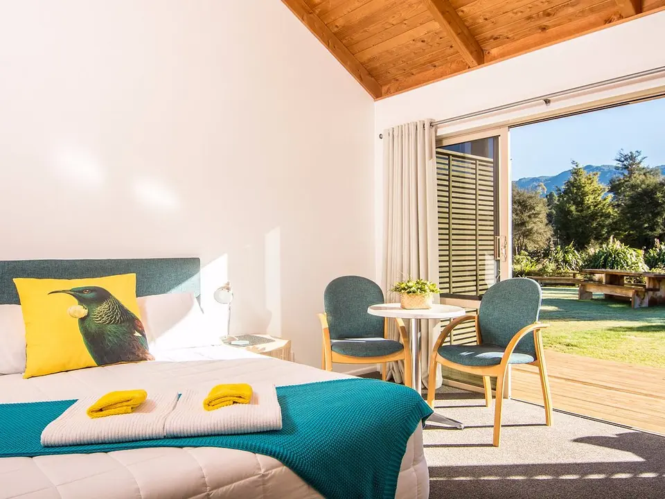 Op slechts 400 meter van het Abel Tasman National Park vind je de Abel Tasman Lodge met 12 ruime, geschakelde privéchalets in een prachtig begroeid terrein. Alle chalets zijn zo geplaatst dat je de hele dag door van de zon kunt genieten. Na een actieve dag kom je hier weer helemaal tot rust.