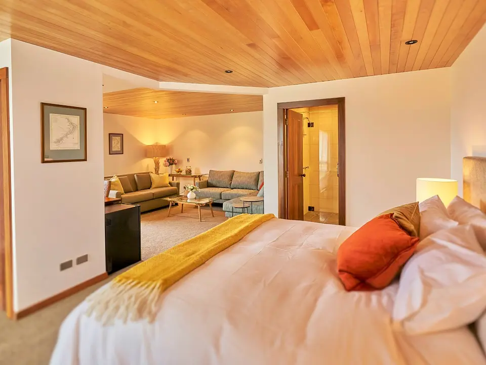 Helemaal passend in de omgeving is de kleinschaligheid van de lodge. Er zijn vier kamers en er kunnen maximaal tien personen verblijven. De gastheren Breidi en Brad, een Kiwi-echtpaar combineren hun passie voor Nieuw-Zeeland met hun zorg voor de gasten. Alle kamers zijn suites, met grote ramen om nog meer te genieten van het uitzicht. Er is een ruim woongedeelte, een slaapgedeelte en een badkamer met douche. Televisie en een kluisje tref je ook op de kamers aan.
