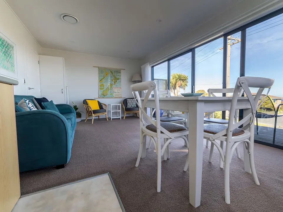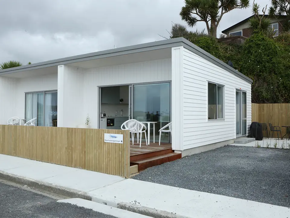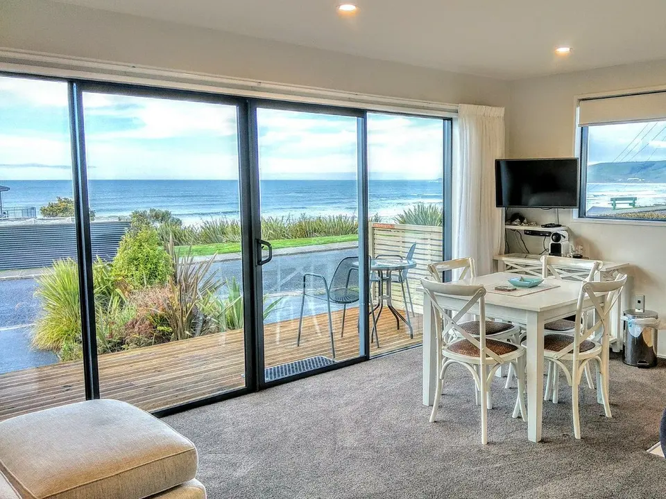 De beachside appartementen liggen het dichtst bij het strand van Kaka Point. Het seaview appartement kijkt uit over zee.