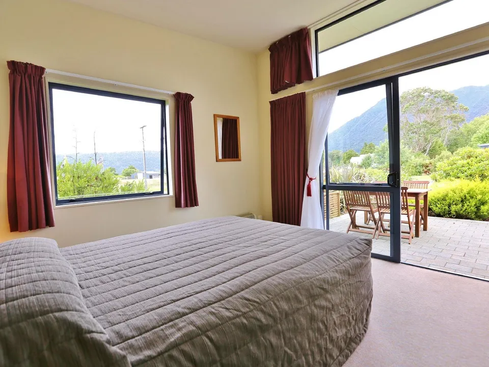 Door de grote ramen van de kamers blijf je naar buiten staren. Als je hier je dag begint, in het zonnetje, met een geweldig uitzicht, dan kan de dag niet meer stuk! Dit is een ideaal startpunt om Fox Glacier te bezoeken, als je een comforrtabel hotel tegen een gunstige prijs zoekt.