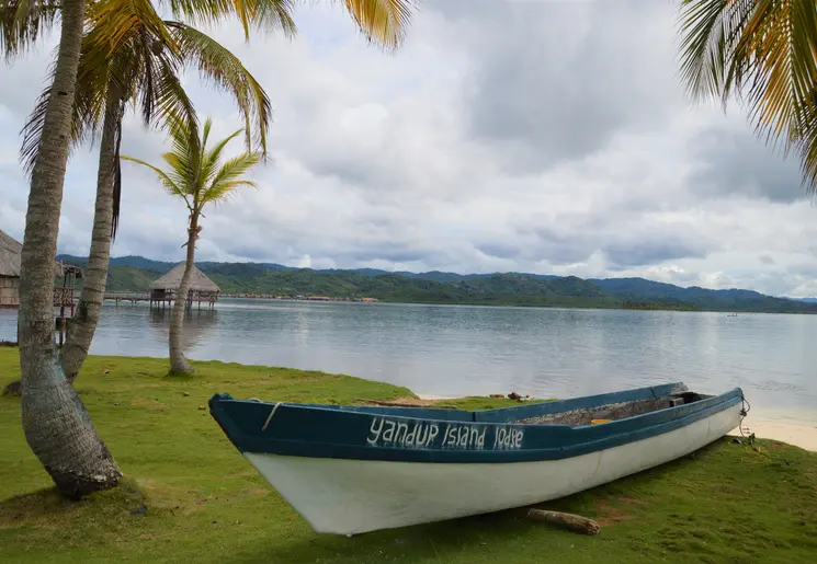 Na aankomst stap je in een bootje en vaart naar de lodge.