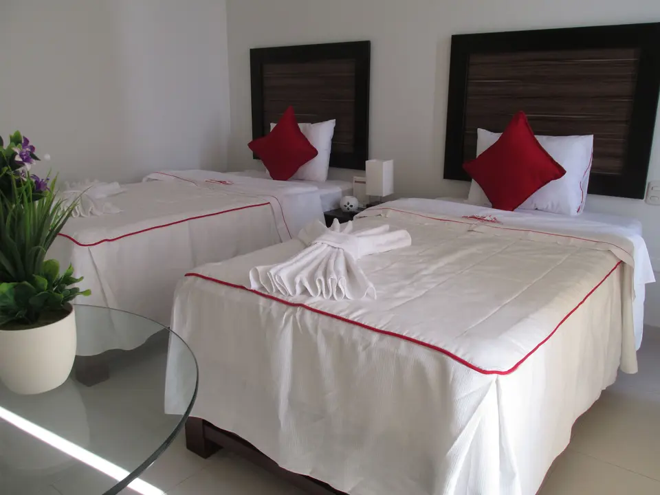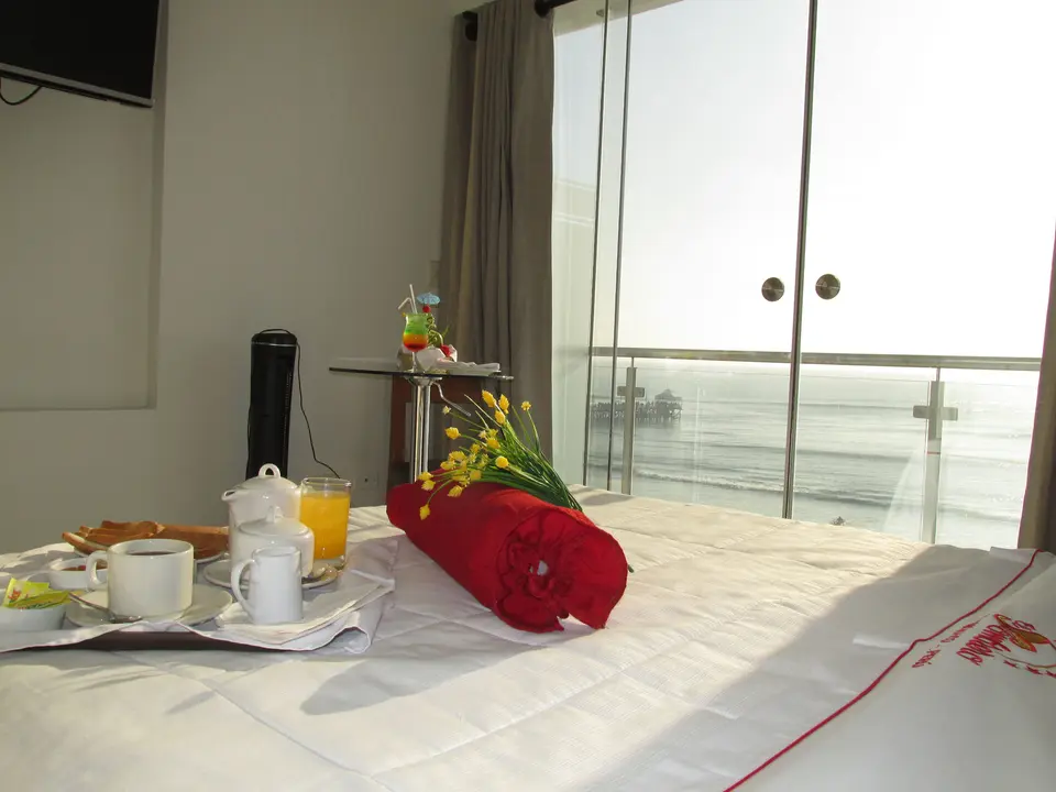 De (bad)kamers zijn ruim en netjes ingericht. Er is een televisie, kledingkast, bed en zitje aanwezig. Helaas hebben niet alle kamers een balkon. Wel kan je je voorkeur doorgeven aan het hotel. Vanaf het balkon heb je zicht op het strand. Heerlijk om hier ’s ochtends te genieten van je ontbijt.