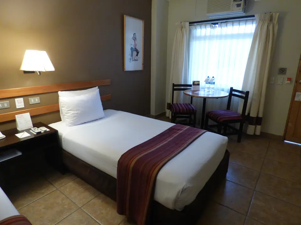 Er zijn drie etages. De kamers komen uit op een galerij. De kamers zijn redelijk ruim en hebben airconditioning, een ventilator, een kluisje en televisie. In de badkamers is een bad met een douche erboven. Er is warm water. In de badkamer hangt een föhn. Er is een tafel met twee stoeltjes in de kamer. De kamer is in lichte tinten ingericht.
