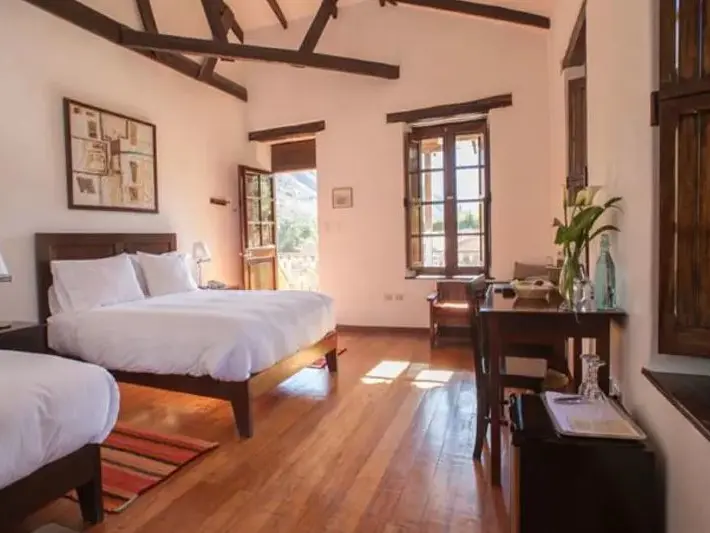 Als je als familie afreist naar Ollantaytambo dan kun je kiezen voor één van de nieuwe casita’s. Deze kamer heeft twee slaapkamers en een en-suite badkamer. In de ene kamer vind je een tweepersoonsbed en in de andere kamer staan twee losse bedden.