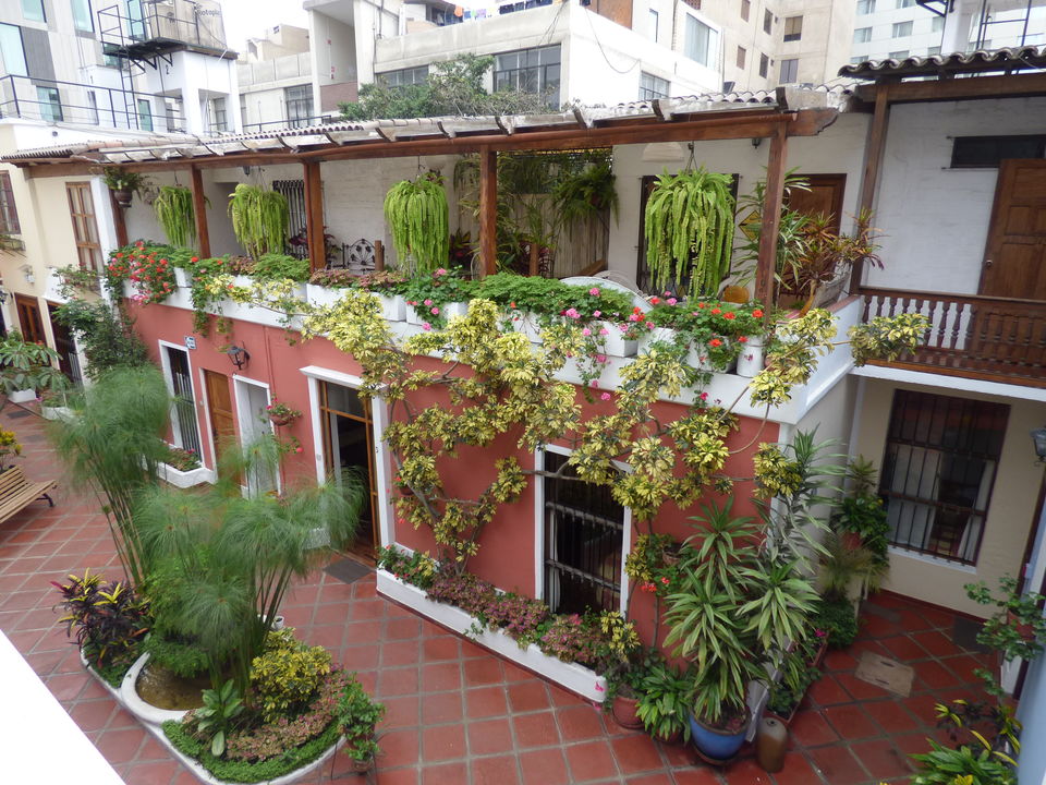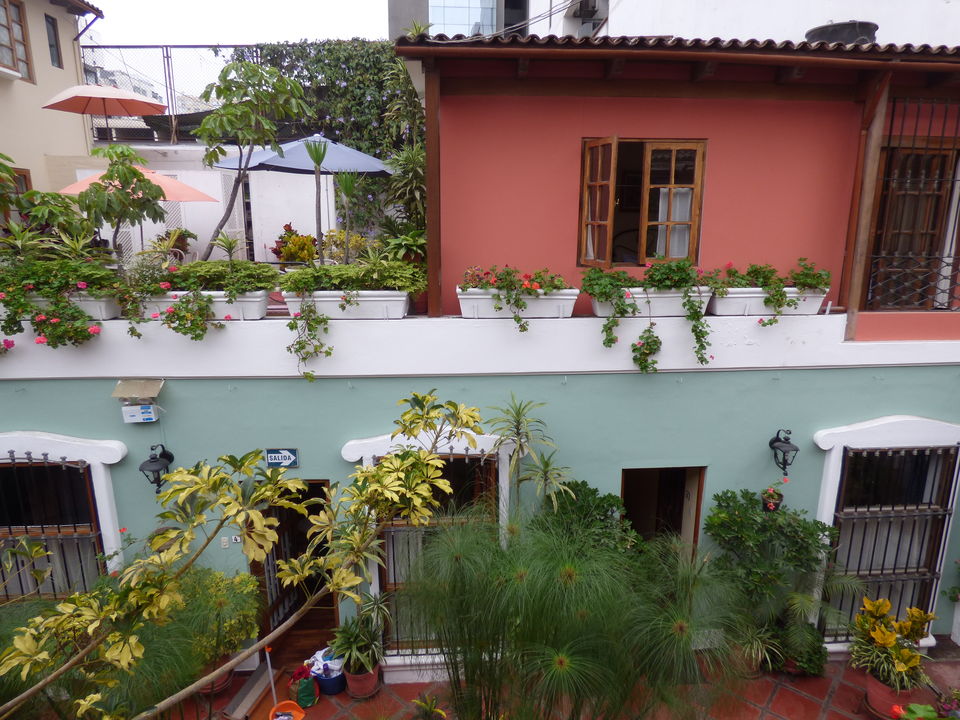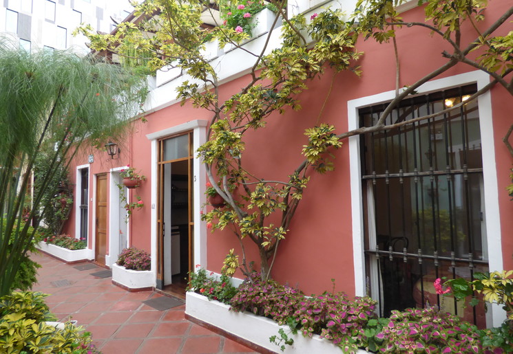 Knappe kamers rondom patio met bloemen in het hart van Miraflores.