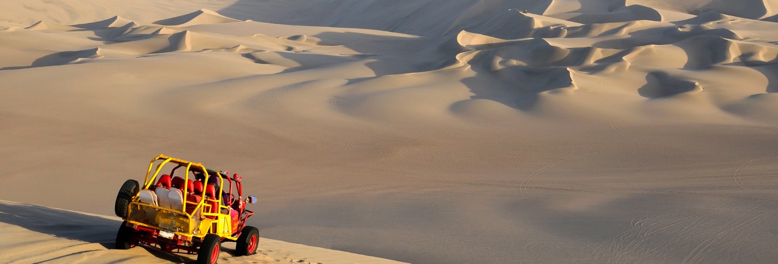 Kamperen in de woestijn is echt iets wat u gedaan moet hebben. De heldere hemel met duizenden schitterende sterren zal u niet snel vergeten. U rijdt eerst met een buggy de woestijn door, heuvel op heuvel af. U maakt wat fotostops en geniet van de zonsondergang over Huacachina. Als het merendeel van de toeristen terug naar Huacachina rijdt, trekt u nog verder de woestijn in, naar uw kampeerplek. Genietend van een uitgebreide barbecue onder een schitterende hemel brengt u de avond door waarna u voldaan uw tent in kruipt.