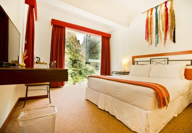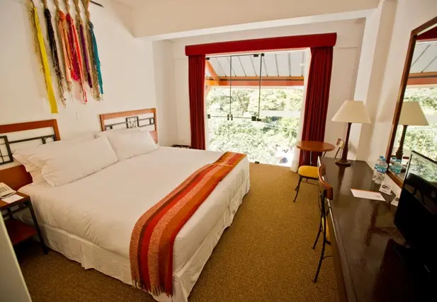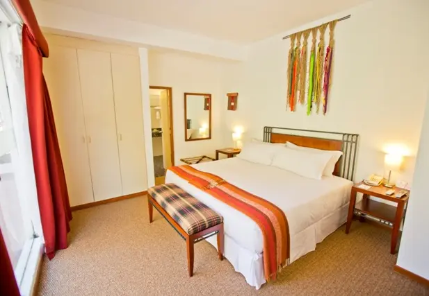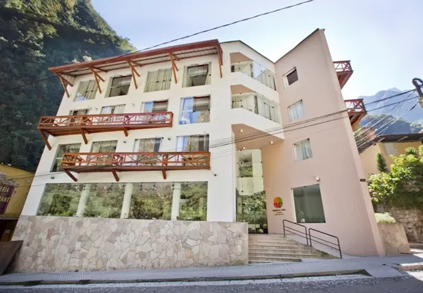 Je reist zonder koffer naar Aguas Calientes. Je grote bagage laat je achter in Cuzco. Bij aankomst van de trein wacht de vertegenwoordiger van het hotel met een naambord van het hotel. Samen met de vertegenwoordiger van het hotel loop je het kleine stukje naar de accommodatie toe. Je draagt je eigen bagage.