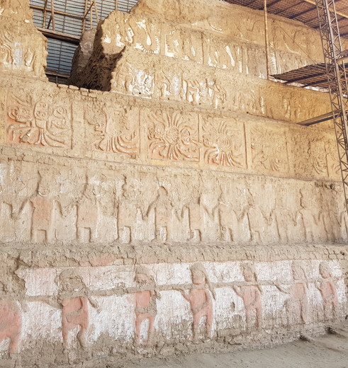 Niet ver buiten de stad Trujillo zijn verschillende opgravingen uit diverse tijdperken. ’s Morgens bezoek je het museum bij de piramide van de Zon en de Maan en de piramide van de Maan zelf. Een gigantisch complex. Het zijn eigenlijk 5 piramides, die staan voor de koningen die stierven. Ooit was dit het grootste gebouw door mensen gemaakt op het westelijk halfrond. 100 miljoen lemen stenen zijn erin verwerkt. De hoogste piramide was 45 meter! De opgravingen zijn nog in volle gang. Heel opvallend zijn de kleuren die bewaard zijn gebleven op de decoraties in de piramide. Deze decoraties, figuratief, en van goden en dieren zijn indrukwekkend.