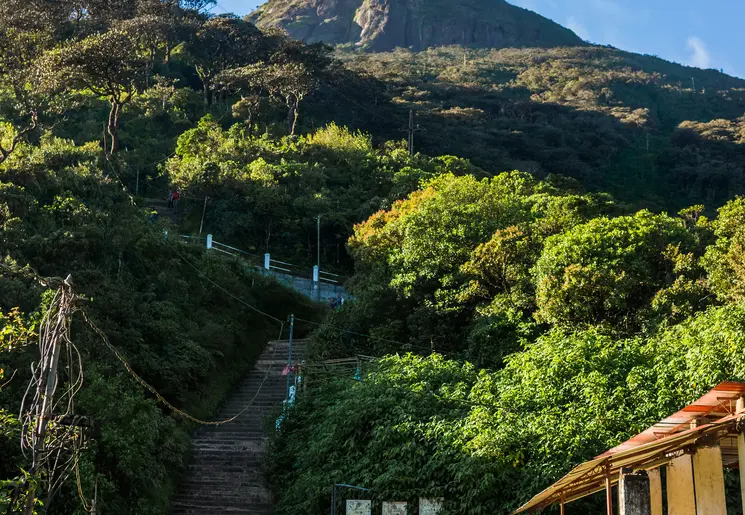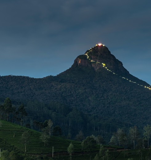 Adam’s Peak is de op 5 na hoogste berg in Sri Lanka is 2.243 meter hoog. Op de top van Adam’s Peak bevindt zich, volgens de legende de voetafdruk (Sri Pada) van Boeddha, die hij bij 1 van zijn 3 bezoeken aan de berg heeft achtergelaten.
