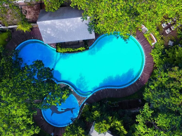 Van buiten een groot gebouw, maar bij binnenkomst is het toch erg sfeervol. Je loopt via een bruggetje over het water naar de receptie. Dit is de beste accommodatie voor een verblijf in deze omgeving en een perfecte uitvalsbasis voor een bezoek aan het Udawalawe National Park om olifanten te spotten en om een bezoek te brengen aan het olifantenopvanghuis.