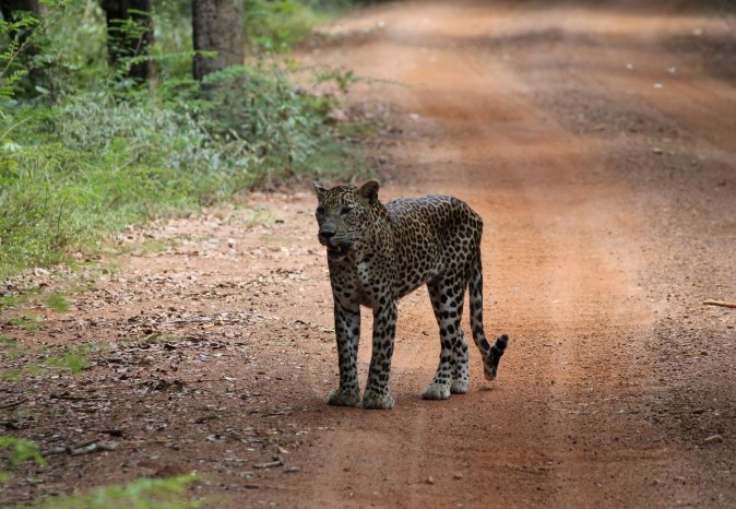 Eenmaal aangekomen bij de entree van het nationaal park kan het avontuur beginnen. Het roodbruine zand op de weggetjes geven me het gevoel of we op safari zijn in Afrika. De eerste dieren laten zich na enige tijd al zien: herten, buffels, ijsvogels. En wat ik hier totaal niet had verwacht zijn pauwen. De gids is er nogal enthousiast over. Wij iets minder, want eigenlijk willen we heel graag de luipaarden zien.