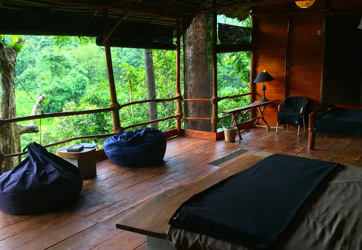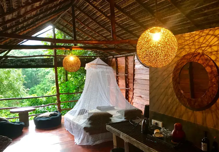 Deze lodge ligt op een heuvel uitkijkend op de Kelani-rivier. De cabins zijn veelal open waardoor je echt een buiten ervaring hebt. Maar overdekt met een rieten dak voor een droog verblijf. Het terras heeft uitzicht op de rivier en ’s avonds geniet je hier van een kampvuur.